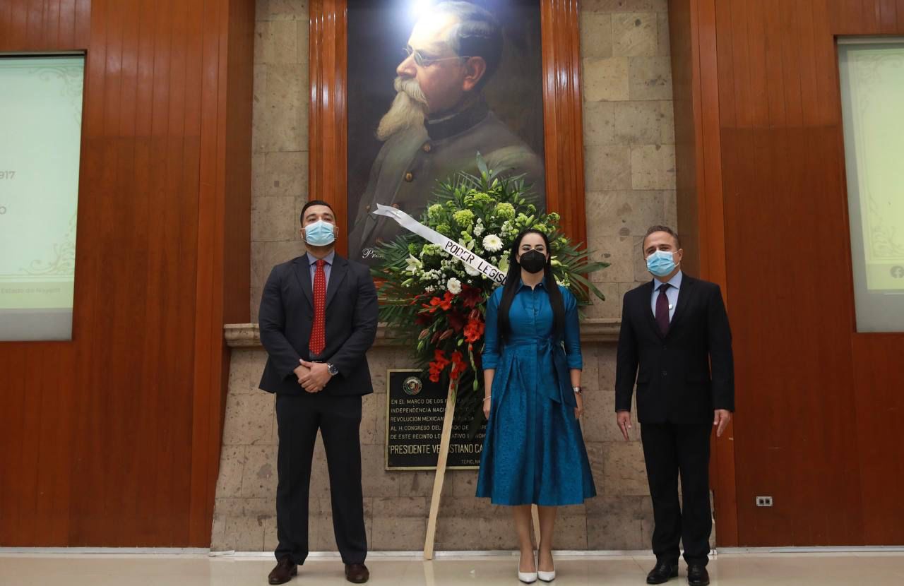 guardia de honor y colocaron una ofrenda floral ante la imagen de Venustiano