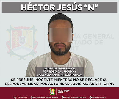 En el interior del Centro de Readaptación Social "Venustiano Carranza", la Fiscalía General del estado de Nayarit a través de la Agencia de Investigación Criminal ejecutó dos órdenes de aprehensión contra Héctor Jesús “N”, la primera por su probable participación en hechos que para la ley constituyen el delito de robo calificado, en tanto la segunda orden de aprehensión fue ejecuta por su presunta responsabilidad en hechos que la ley justiprecia como delito de violencia familiar equiparada.